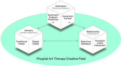 이번 연구는 전통적 미술 매체와 디지털 기술을 통합한 ‘피지탈(Phygital) 미술치료’ 개념을 이론적으로 정립한 최초의 연구로, 물리적 매체성과 디지털 환경이 하나의 치료적 장(field) 안에서 어떻게 상호작용하는지를 구조적으로 제시한다. 연구팀은 이를 바탕으로 Phygital Therapeutic Field Model(PTFM)을 제안하며, 피지탈 미술치료의 핵심 요소를 다음 네 가지 이론 영역으로 체계화하였다.