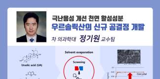 차 의과학대 정기원 교수팀, 극난용성 개선 천연 활성성분 우르솔릭산의 신규 공결정...