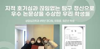 지적 호기심과 끊임없는 탐구 정신으로 우수 논문상을 수상한 우리 학생들